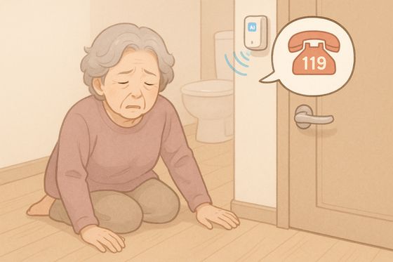 AI 센서가 노인의 쓰러짐을 감지해 119에 긴급 신고하는 장면을 표현한 이미지. 챗GPT 일러스트 |