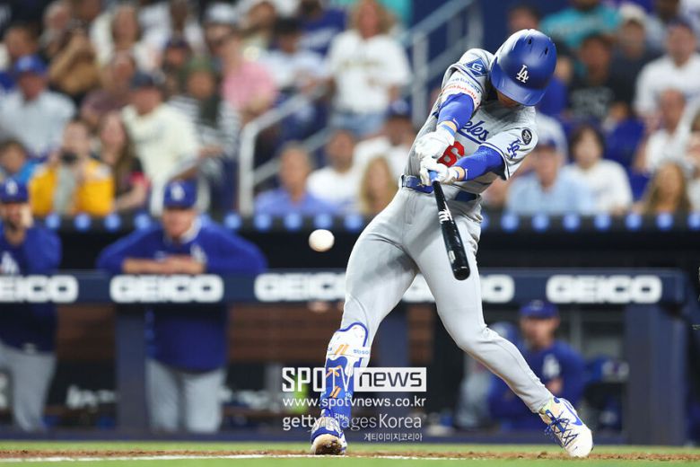 9번타자 2루수로 나와 5회 두 번째 타석에서 빅리그 첫 안타를 기록했다. 2022년 사이영상 수상자인 샌디 알칸타라의 시속 96.6마일(약 155.4㎞) 포심 패스트볼을 밀어서 좌익수 앞까지 보냈다. 마이애미 선수들이 김혜성의 첫 안타 공을 다저스 더그아웃으로 던져줬다. 김혜성은 이어 오타니 타석에서 2루 도루에 성공한 뒤, 오타니의 홈런에 홈을 밟았다.
