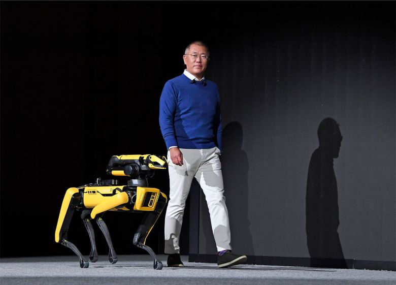 정의선 현대차그룹 회장과 보스턴다이내믹스 로봇 개 스팟. /현대차그룹 제공 |