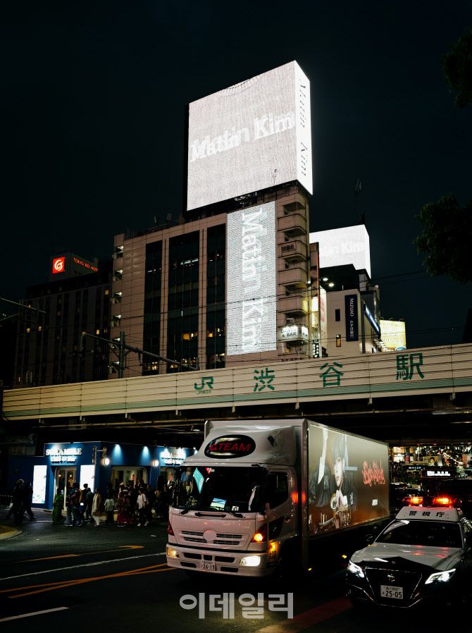지난달 25일 일본 시부야 중심부에는 K패션 브랜드 ‘마뗑킴’ 옥외 광고가 쉼없이 노출되고 있었다. (사진=김정유 기자)