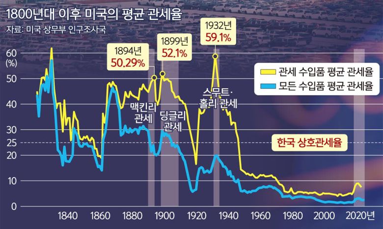 허윤 서강대 국제대학원 교수는 “그때 미국은 신생국이고 영국에 비해 산업이 훨씬 초보 단계라 산업 보호론을 앞세워 고율 관세를 정당화할 명분이 있었다”고 말했다.