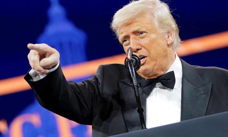 도널드 트럼프 미국 대통령이 지난달 워싱턴에서 열린 공화당의회위원회(NRCC) 만찬 행사에서 상호관세의 정당성, 효과 등을 강조하는 연설을 하며 손가락을 펴 청중석을 가리키고 있다. 로이터연합뉴스