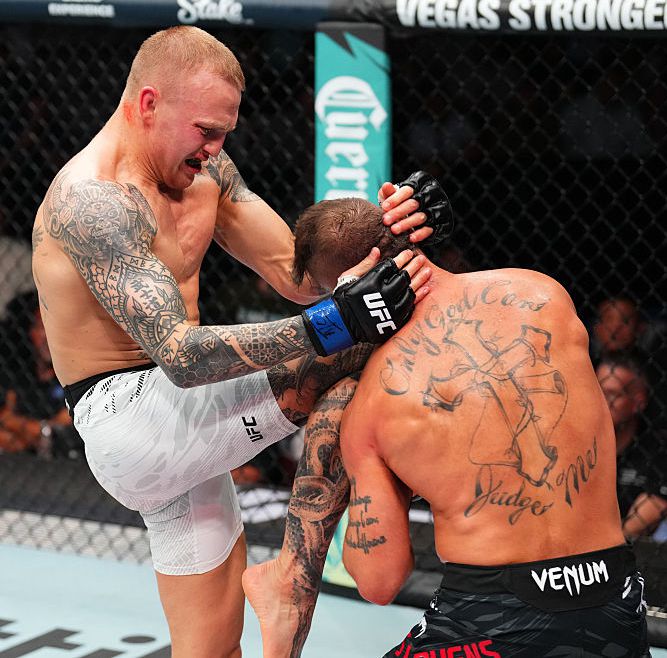 존스가 스티븐스를 니킥으로 공격하고 있다. 사진 | UFC |