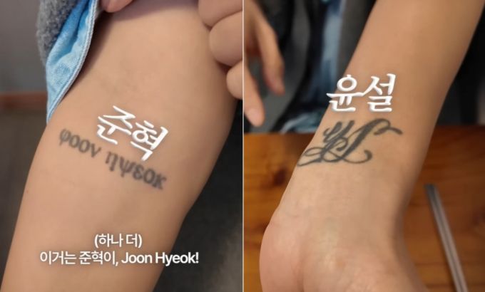 반대쪽 팔목에 새긴 타투에 대해선 "준혁(아들) 영어 이름을 'Joon Hyeok'이라고 쓰면 재미없지 않나. 그래서 좀 안 보이는 폰트로, 문양처럼 했다"고 부연하며 자녀에 대한 애정을 드러냈다.