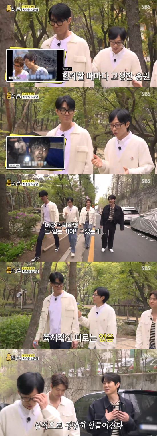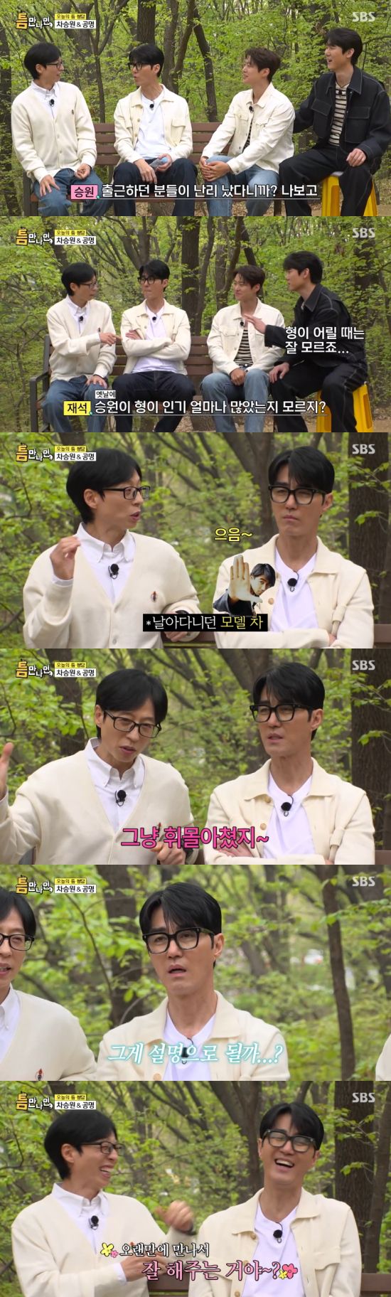 지난 6일 방송된 SBS 예능 프로그램 '틈만 나면,'에서는 '틈 친구'로 차승원, 공명이 출연해 '틈 주인'과 만나 이야기를 나눴다.