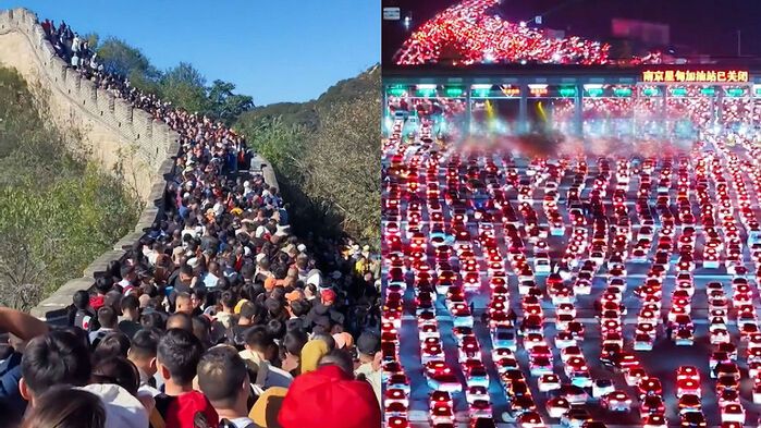 우리처럼 긴 연휴를 맞은 중국에서는 어딜 가든 인산인해, 진풍경이 포착됐습니다.