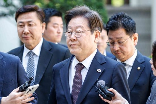 대장동 배임 및 성남FC 뇌물 혐의를 받고 있는 이재명 더불어민주당 대선 후보가 29일 서울 서초구 서울중앙지방법원에서 열린 공판에 출석하고 있다. 강진형 기자