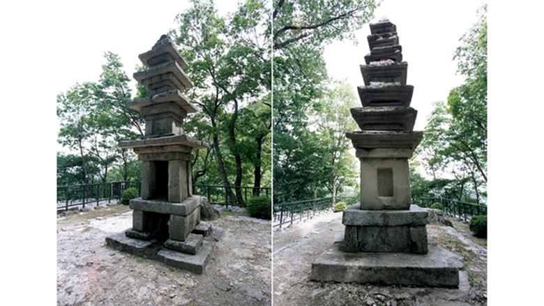 ▲ 왼쪽은 보물 '공주 청량사지 오층석탑', 오른쪽은 '공주 청량사지 칠층석탑'