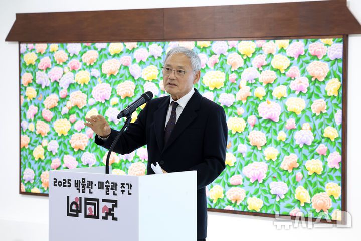 [서울=뉴시스] 박진희 기자 = 유인촌 문화체육관광부 장관이 2일 서울 은평구 사비나미술관에서 열린 '2025 박물관·미술관 주간' 개막식에 참석하여 개회사를 하고 있다. '박물관·미술관 주간'은 '세계 박물관의 날'을 기념해 전국 박물관·미술관이 참여하는 문화축제이다. 2025.05.02. pak7130@newsis.com |