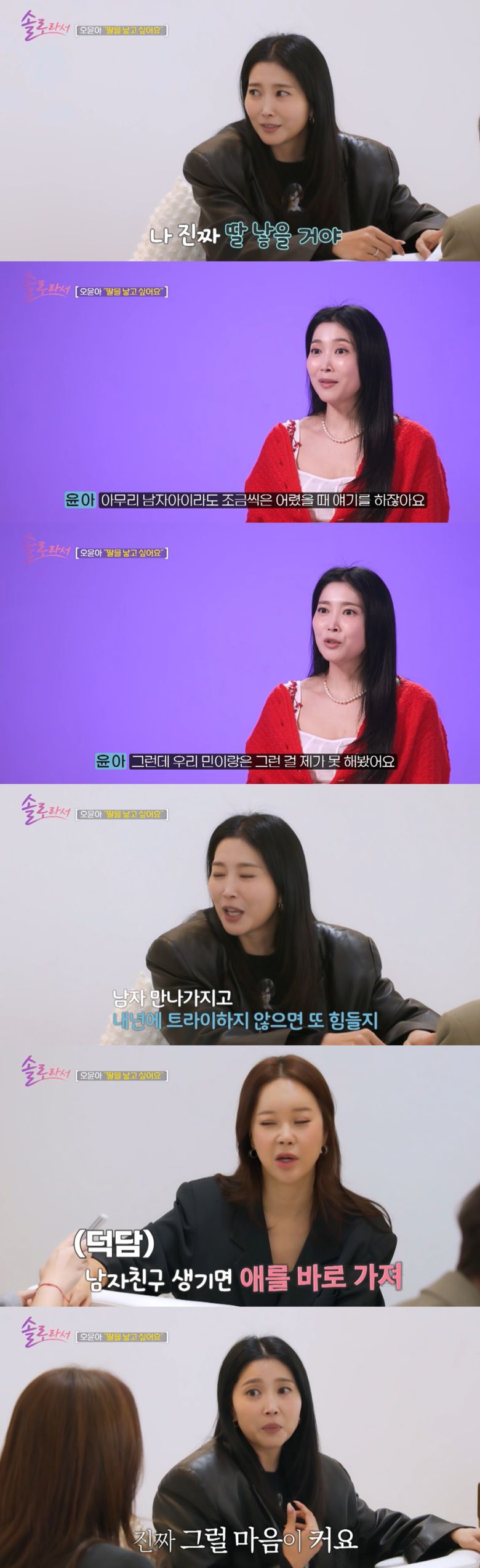 6일 방송된 SBS Plus·E채널 예능 '솔로라서' 18회에서는 오윤아가 한의원을 찾아 건강 상태를 점검하고, 절친 백지영과 힐링의 시간을 보내는 모습이 그려졌다.