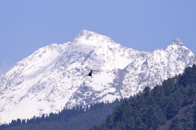 카슈미르 계곡 위를 비행 중인 헬기/AP 연합뉴스