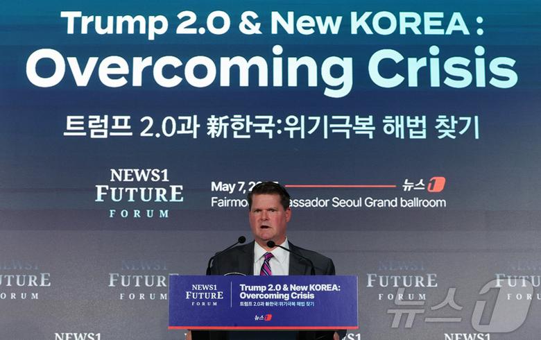 랜달 슈라이버 전 미국 국방부 동아시아·태평양 담당 차관보가 7일 서울 여의도 페어몬트 호텔에서 열린 뉴스1 미래포럼에서 기조연설을 하고 있다. ‘트럼프 2.0과 新한국:위기 극복 해법 찾기’를 주제로 열린 이번 포럼은 뉴스1 주최로 열렸다. 2025.5.7/뉴스1 ⓒ News1 박세연 기자 |