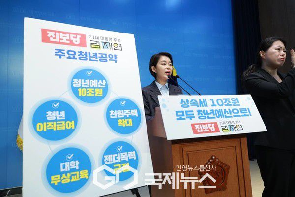 (서울=국제뉴스) 고정화 기자 = 진보당 김재연 대통령선거 후보가 7일 국회 소통관에서 청년공약을 발표하며, 상속세 10조원을 청년예산으로 신설해 청년 주거·학자금·자립기반을 전면 지원하겠다고 밝혔다.