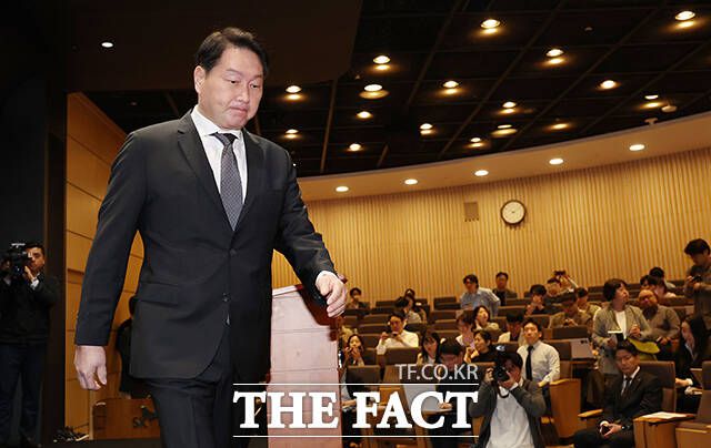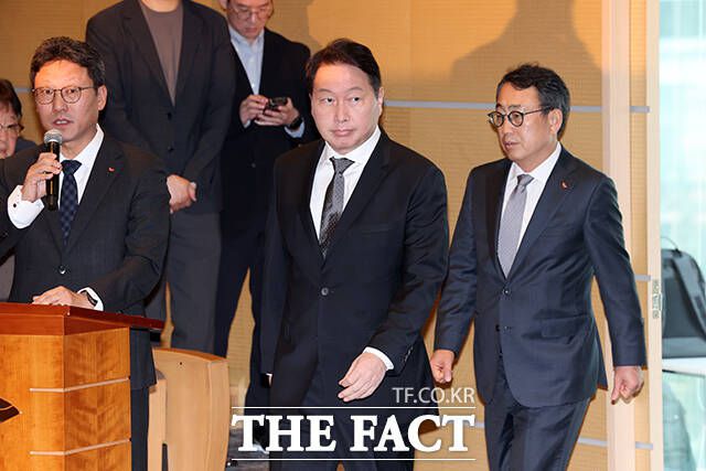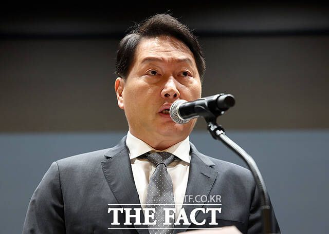 최태원 회장은 이날 SK텔레콤의 해킹 사고에 대해 "고객분들과 국민들께 불안과 불편을 초래했다"며 "SK그룹을 대표해 사과드린다"며 고개 숙였다.