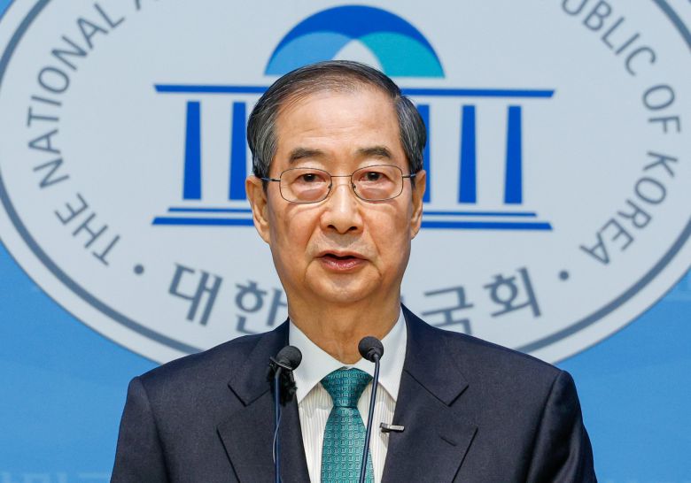 한덕수 무소속 대선 예비후보가 지난 2일 국회에서 대선 출마를 선언하고 있다. 한 후보는 취임 후 3년 안에 개헌을 이루고 하야하겠다는 구상을 밝혔다. /뉴스1 |