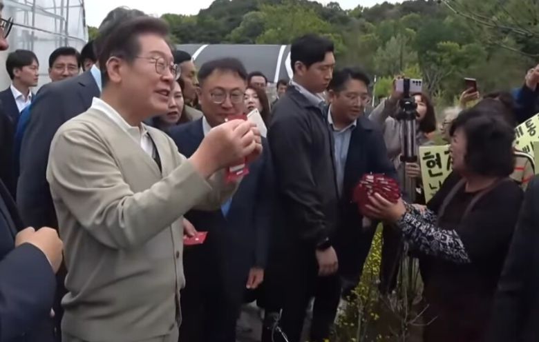 결국 지지자가 상자를 풀어 몇 봉지만 건네자 이 후보는 한 봉지만 받으며 “이거는 설마 (검찰이) 징역 5년 이런 거 하지 않겠지”라고 뼈 있는 농담을 건넸다. 이어 대추즙으로 알려진 건강식품 한 봉지를 마시곤 “맛있다 진짜”라고 말하며 웃었다. 이날 이재명 후보 쪽은 공직선거법 위반 소지를 없애기 위해 대추즙을 건넨 지지자에게 현금을 약간 지불했다.