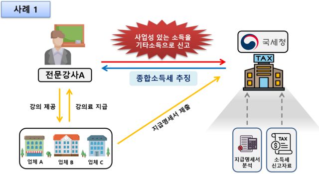 실제로 지난해 신고내용 확인 결과, 사업성 있는 소득(사업소득)을 기타소득으로 신고하는 등 신고도움자료 제공에도 불구하고 잘못 신고한 사례가 있었다.