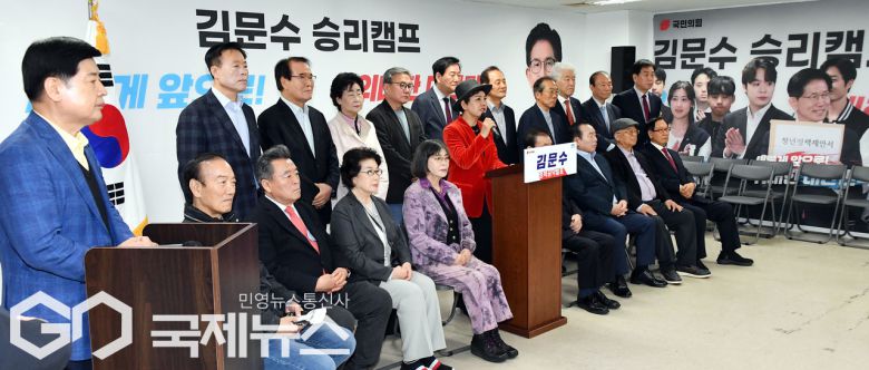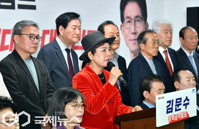 (서울=국제뉴스) 송영선 전 새누리당 의원이 7일 오전 서울 여의도 김문수 국민의힘 대통령 후보 선거 캠프 사무실에서 열린 김 후보 지지 성명서 발표 기자회견에 참석해 발언을 하고 있다./사진=이용우 기자