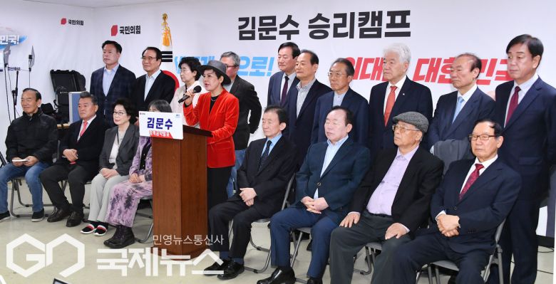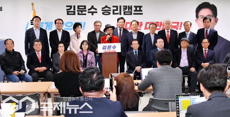 (서울=국제뉴스) 송영선 전 새누리당 의원이 7일 오전 서울 여의도 김문수 국민의힘 대통령 후보 선거 캠프 사무실에서 열린 김 후보 지지 성명서 발표 기자회견에 참석해 발언을 하고 있다./사진=이용우 기자