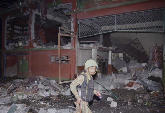 7일 파키스탄령 카슈미르 무자파라바드 인근에서 파키스탄군이 인도 미사일 공격으로 파손된 것으로 보이는 건물이 있다. [사진=AP/연합뉴스]
