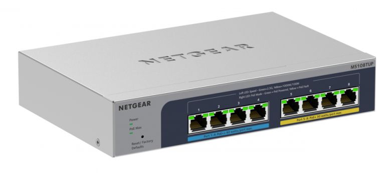 넷기어 MS108TUP는 모든 포트에서 2.5Gbps 속도를 제공하는 스위치 허브다. 여기에 포트당 최대 60W 전원을 제공하는 PoE++ 기능까지 갖춰 고전력을 요구하는 PoE 장치도 문제없이 연결해 사용할 수 있다. 특히 연결한 장치의 PoE 전원 공급을 자동으로 조정하는 PoE 자동 밸런스 기능까지 제공해 편리하다.