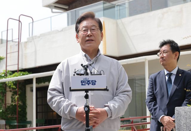▲더불어민주당 이재명 대선 후보가 '골목골목 경청투어:국토종주편'에 나선 7일 전북 전주시 완산구의 한 카페에서 'K-콘텐츠' 산업 진흥 간담회를 마친 뒤 취재진 질문에 답변하고 있다. 이날 서울고등법원은 오는 15일 예정됐던 이 후보의 공직선거법 위반 혐의 사건 파기환송심 첫 공판을 오는 6월 18일로 연기했다. ⓒ연합뉴스 |