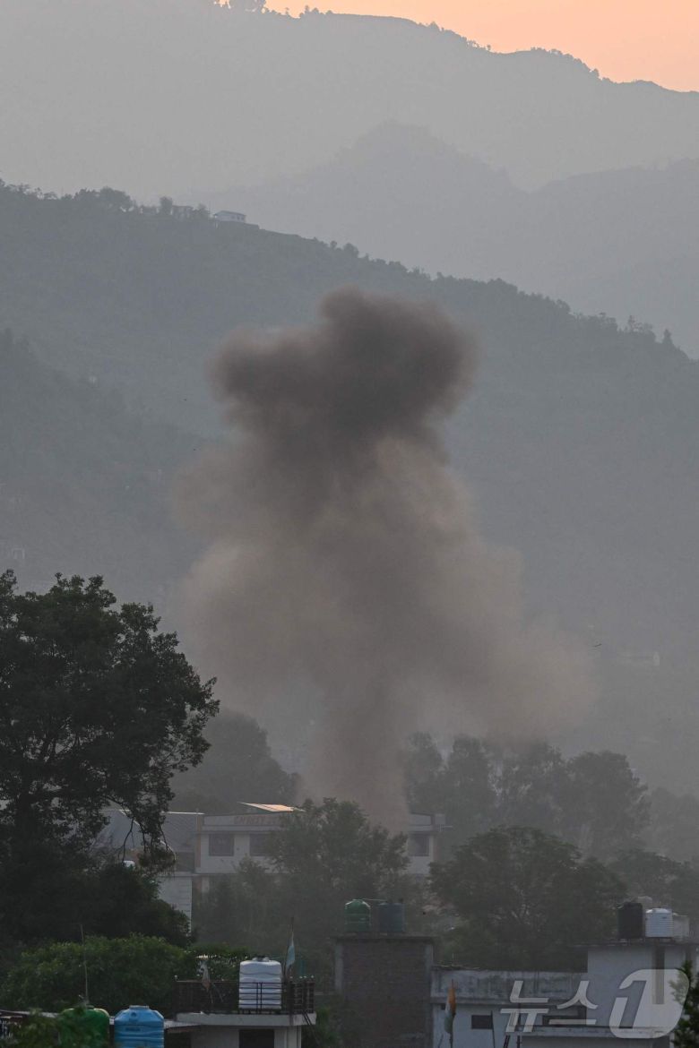 7일(현지시간) 인도 푼치에서 파키스탄을 겨냥한 미사일 공격을 해 검은 연기가 솟아 오르고 있다. 2025.05.07 ⓒ AFP=뉴스1 ⓒ News1 우동명 기자 |