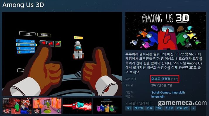 ▲ 어몽 어스 3D 스팀 유저 평가 (자료출처: 스팀 상점 페이지) |