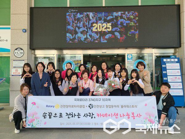 (청주=국제뉴스) 이재기 기자 = 충북 진천상업고등학교(교장 반채익) 창업동아리와 진천장미로타리 클럽(회장 박영희)이 7일, 어버이날을 맞아 지역 어르신들께 직접 만든 카네이션 배지를 달아드리는 봉사활동을 함께 진행했다.