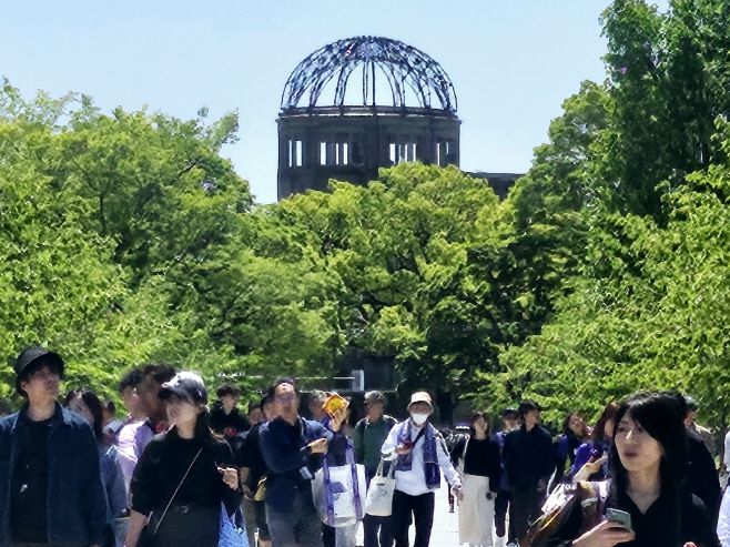 경기장 인근의 평화공원. 관광객과 시민들이 원폭 돔을 배경으로 도보 이동하며, 히로시마라는 도시의 이중적인 풍경을 마주하게 된다. / 사진 전형찬 선임기자 |