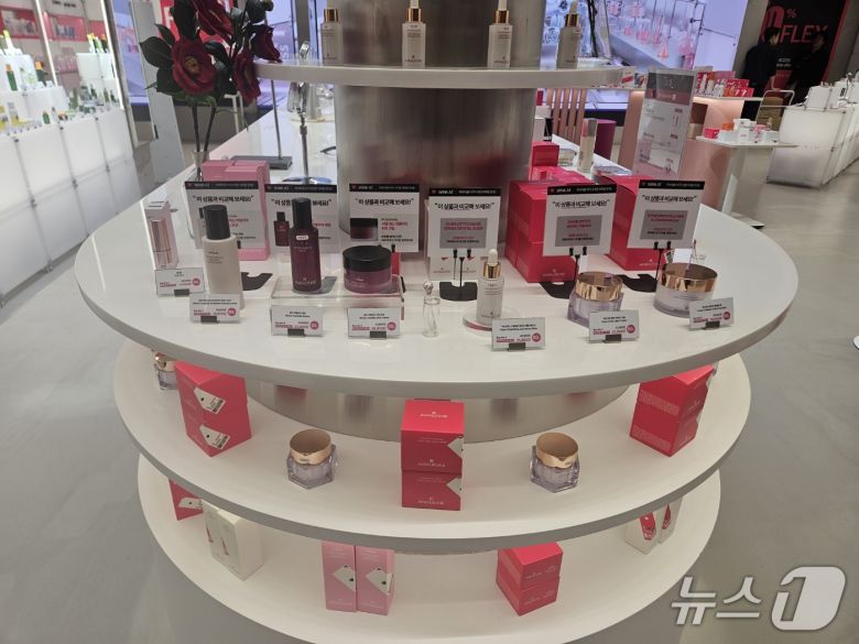 와이레스 북촌 플래그십스토어 내부 모습. 매장에는 명품 브랜드 화장품을 오마주한 듀프 제품이 판매되고 있다.ⓒ 뉴스1/김진희 기자