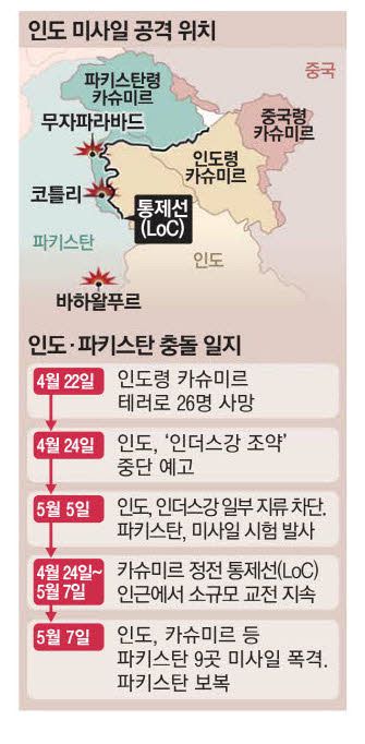 로이터통신은 군사 전문가들을 인용해 "양측은 극한 상황에 몰리지 않는 한 핵무기를 고려하지 않을 것"이라고 보도했다. 인도와 파키스탄은 1947년 영국에서 분리 독립한 후 카슈미르 지역 영유권을 놓고 수차례 전쟁을 치렀다. 카슈미르 내 다수인 무슬림은 파키스탄으로 편입하기를 원했지만 소수이자 힌두교도였던 지도층은 인도 편입을 결정하면서 양국 간 갈등이 시작됐다. 양국은 지난달 22일 분쟁지역 인도령 카슈미르 휴양지 파할감 인근에서 관광객 등을 상대로 한 무슬림 테러리스트들의 총기 테러가 발생해 26명이 사망한 뒤 일촉즉발 긴장을 이어왔다.