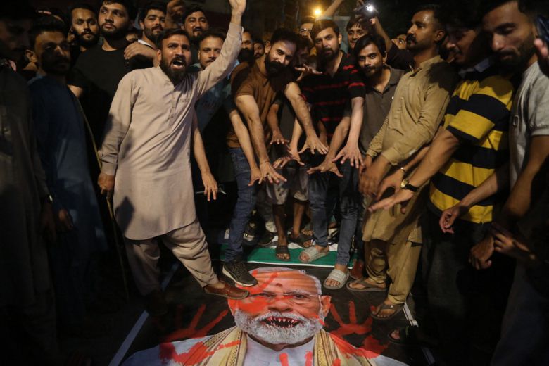 파키스탄, 반인도 시위 격화7일(현지시간) 파키스탄 신드주 하이데라바드에서 반인도 시위대들이 집회를 열고 나렌드라 모디 인도 총리의 사진을 짓밟은 채 구호를 외치고 있다. 파키스탄 당국은 이날 새벽 인도에서 파키스탄을 향해 미사일 3발이 발사됐다고 밝혔다. 이후 파키스탄이 보복을 단행하면서 양국 간 긴장이 급격히 고조됐다. AFP연합뉴스 |