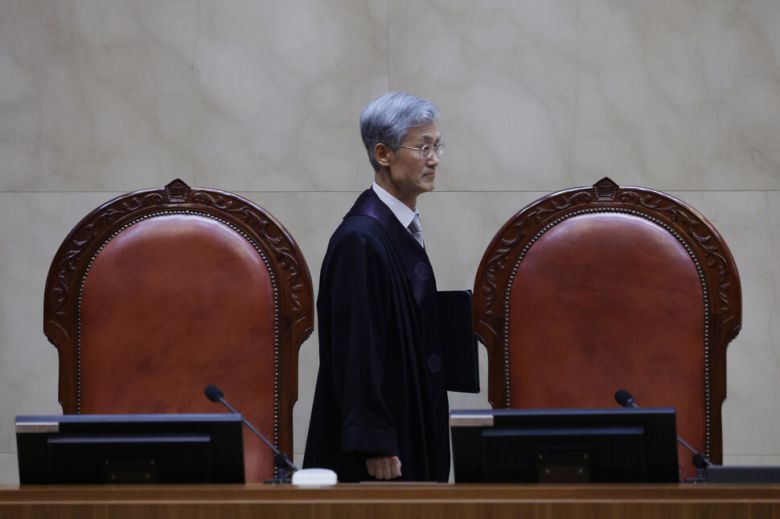 조희대 대법원장이 지난 1일 서울 서초구 대법원에서 열린 더불어민주당 이재명 대선 후보의 공직선거법 위반 사건 상고심 선고 재판에 참석하고 있다. 사진공동취재단 |
