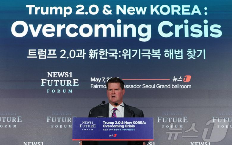 랜달 슈라이버 전 미국 국방부 동아시아·태평양 담당 차관보가 7일 서울 여의도 페어몬트 호텔에서 열린 뉴스1 미래포럼에서 기조연설을 하고 있다. ‘트럼프 2.0과 新한국:위기 극복 해법 찾기’를 주제로 열린 이번 포럼은 뉴스1 주최로 열렸다. 2025.5.7/뉴스1 ⓒ News1 박세연 기자 |