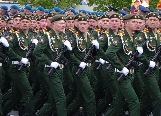 지난해 5월 9일(현지시간) 러시아 모스크바 붉은광장에서 열린 전승절 열병식에서 군인들이 행진하고 있다. 연합뉴스 |