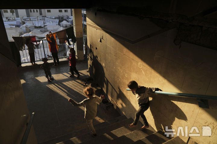 [가자시티=AP/뉴시스]이스라엘이 가자지구의 하마스에 대한 공격 강화를 준비하는 가운데 6일 가자시티의 대피소로 개조된 학교에 대히난 팔레스타인 난민 어린이들. 이스라엘이 20개월째 계속되고 있는 가자지구 전쟁에서 하마스에 대한 공격 강화를 준비하는 가운데 가자지구 전역에서 발생한 이스라엘의 공격으로 여성과 어린이를 포함해 최소 48명이 사망했다고 병원 관계자가 7일 밝혔다. 2025.05.07. |