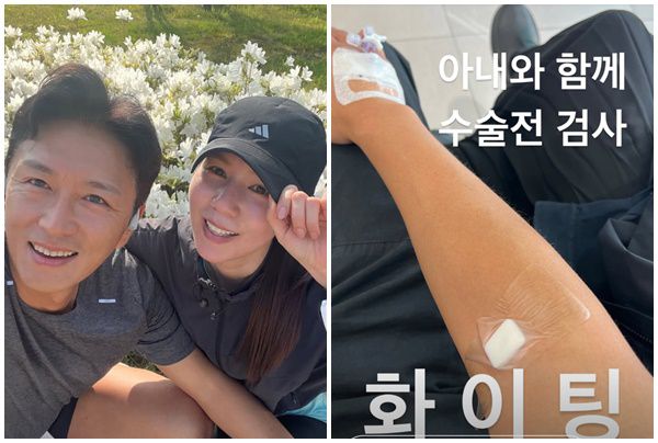 진태현은 "아내와 함께 수술 전 검사"라며 "화이팅"이라고 글을 남겼다. 진태현이 공개한 사진에는 주사 바늘이 꽂힌 팔과 손목이 보여 주위를 안타깝게 했다.