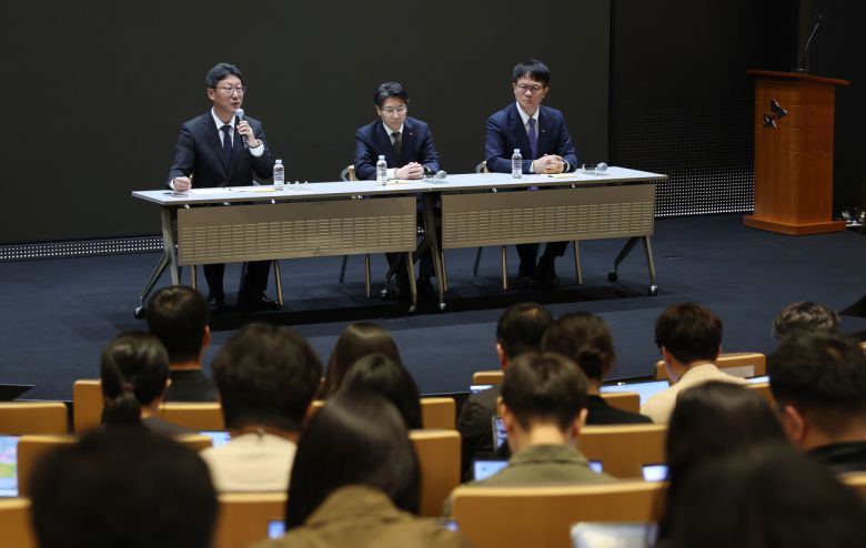 7일 오전 서울 중구 SKT타워 SUPEX홀에서 SK텔레콤 해킹 사태 관련 대국민 사과 기자회견의 모습. [임세준 기자]
