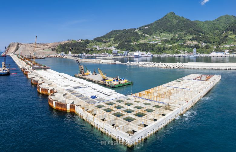 경북 울릉군과 시공사인 DL이앤씨는 이날 울릉읍 사동항 여객선터미널에서 ‘케이슨 거치 완료 기념행사’를 가졌다.