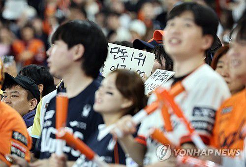 (대전=연합뉴스) 배재만 기자 = 7일 대전 한화생명볼파크에서 열린 프로야구 2025 신한 SOL 뱅크 KBO리그 삼성 라이온즈와 한화 이글스의 경기에서 한화가 10-6으로 이기면서 9연승으로 단독 1위를 달성하자 팬들이 환호하고 있다. 2025.5.7