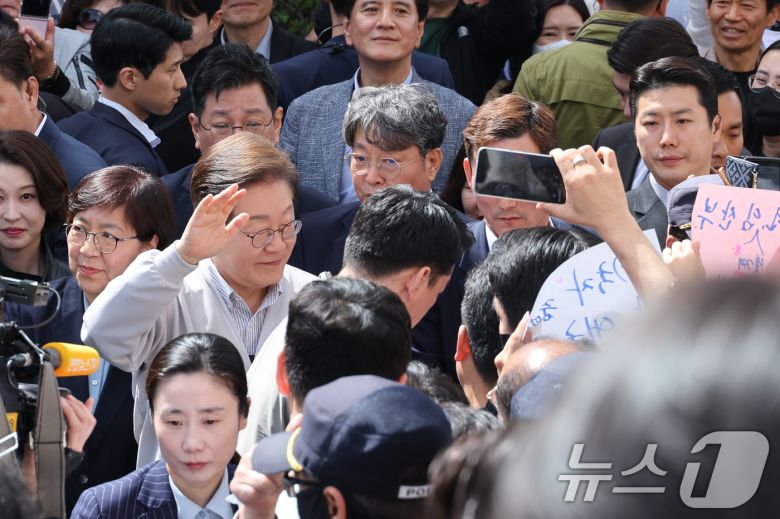 (서울=뉴스1) 노선웅 기자 = 이재명 더불어민주당 대통령 후보의 공직선거법 위반 파기환송심에 이어 대장동 재판의 기일도 대선 이후로 변경됐다.