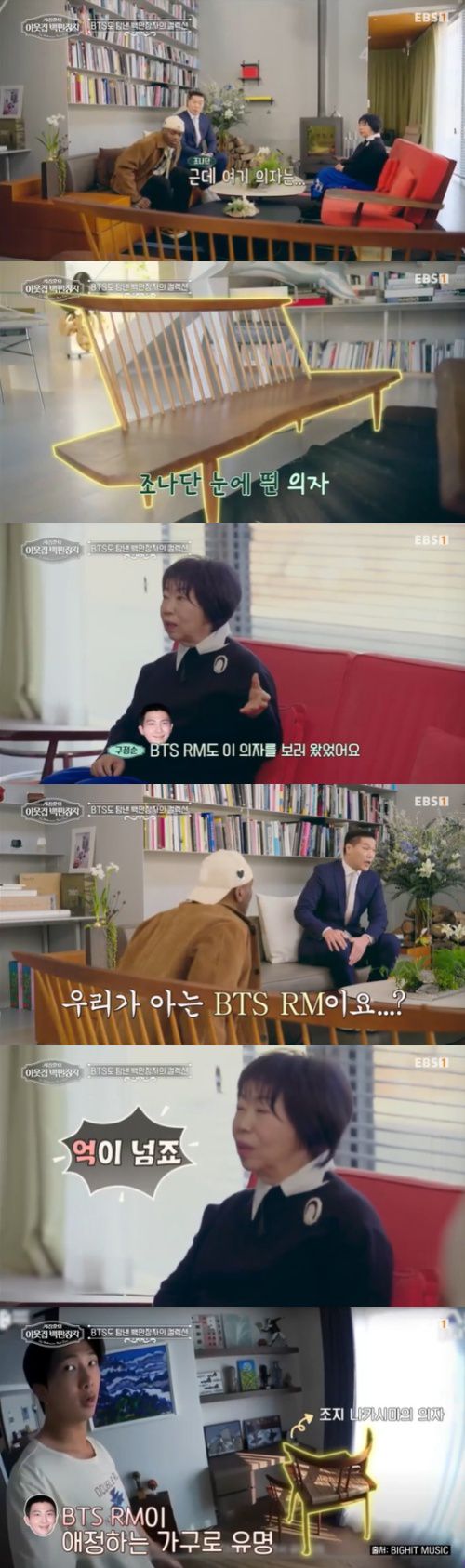 구정순은 "BTS RM도 이 의자를 보러왔었다"고 밝혔고, 서장훈은 "그 럼 저 의자 값도 어마어마하겠다"며 놀랐다. 구정순은 "(가격은) 억이 넘는다"고 알려 감탄을 자아냈다.