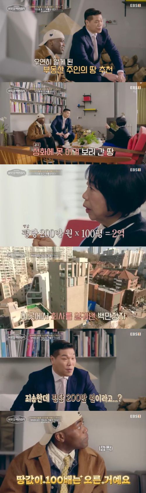 이어 "그 땅값이 200만원인데 100평이었고, 총 금액이 2억 원이었다. 계산해보니 3년이면 땅값이 나오더라"며 "부모님한테 빌려달라고 해서 바로 값겠다고 했다. 부모님을 설득해서 땅을 샀고, 이후에 건물을 올렸다"며 약 30년 뒤 청담동 명품 거리의 건물주가 된 비결을 고백했다.