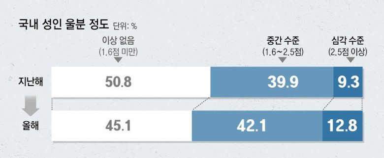 “1년간 심각한 스트레스 경험” 47%… ‘정신건강 안좋다’ 48%, ‘좋다’의 4배