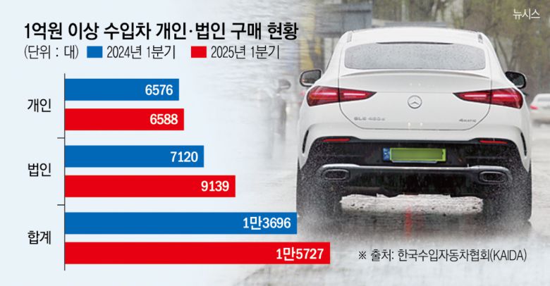7일 한국수입자동차협회(KAIDA)에 따르면 올해 1분기 국내에서 판매된 1억 원 이상 고가 수입 차량은 총 1만5727대로 조사됐다. 이는 지난해 같은 기간 1만3696대보다 14.83% 늘어난 수치다.