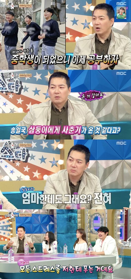 또 송일국은 중학생이 된 삼둥이에 대해 “다른 애들이 됐다. 방송에서 애들 얘기를 하면 친구들 사이에서 난리가 났다. 그 얘기를 들먹거리면서 하지말라고 한다. 그나마 만세가 적극적이다”라고 토로했다.