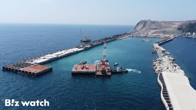 DL이앤씨는 벌집 구조를 본떠 '파력 분산형 케이슨'을 만들어 파도의 충격을 분산하도록 했다. 또 파도에 대한 저항성을 높이기 위해 케이슨을 곡선으로 설계했다. 200년 빈도의 파고(22.6m)에도 견딜 수 있다는 게 회사 측 설명이다.