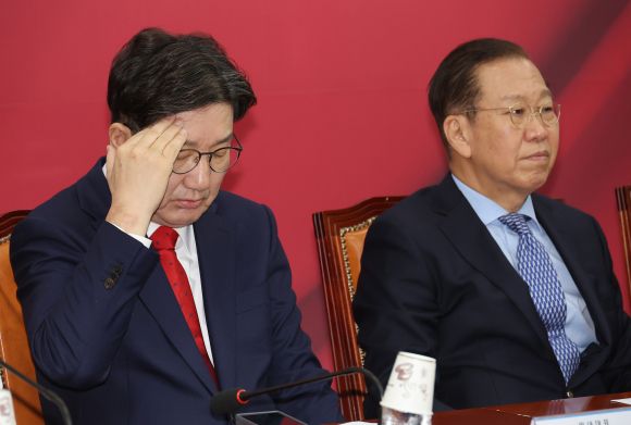 권 원내대표는 김 후보가 ‘한 후보를 누가 끌어냈느냐’며 당 지도부를 비판한 데 대해 “당원들과 국민들이 끌어냈다. 지지율이 안 나오면 어떻게 끌어냈겠느냐”고 목소리를 높였다.