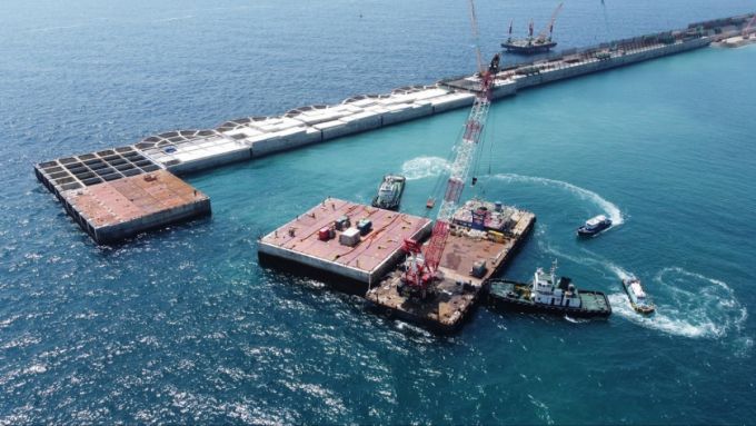 한편 케이슨은 부피가 커 포항 영일만에서 제작한 뒤 해상으로 운송했다. 케이슨을 부두까지 옮기는 역할은 'IPCCV(Individual Pushing Caisson Carrier Vehicle)'가 맡았다. IPCCV는 바닥에 깔린 레일을 따라 유압잭이 설치돼 있어 컨베이어 벨트처럼 움직인다.